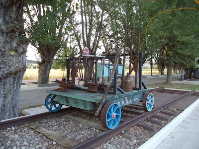 En el paseo que arbolado por grandes olmos lleva hasta el Barrio de la Estación hay un pequeño museo de viejas máquinas de las empleadas en Vias y Obras.